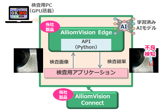 生成したAIモデルを現場の検査用PC内のAlliomVision Connectで実行します。